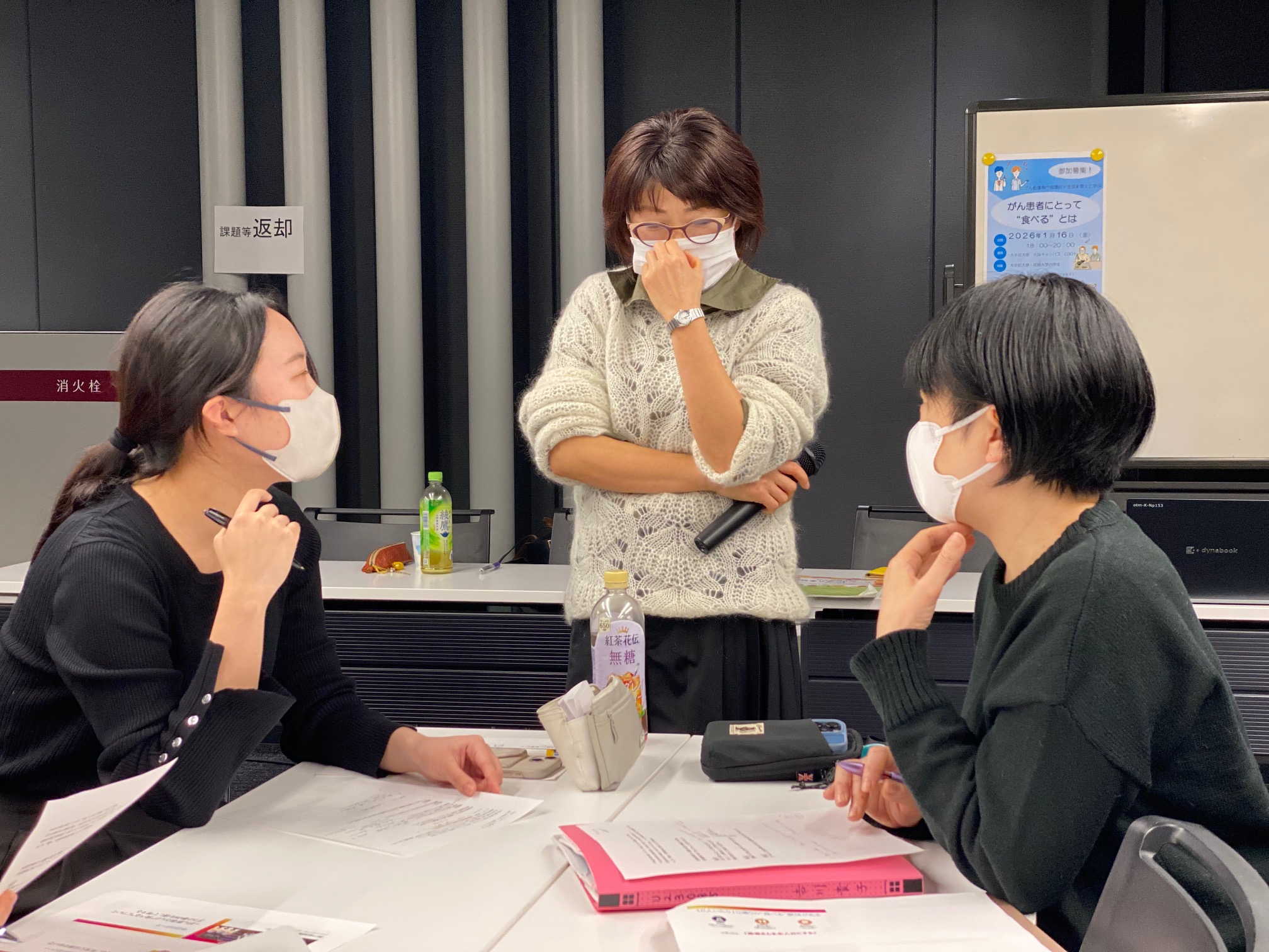 1月16日、大学の課外活動団体「NST(栄養サポートチーム)クラブ」は、「がん患者さんにとって“食べる”とは」をテーマとしたイベントを開催しました。当日は、神戸低侵襲がん医療センターより、がん看護専門看護師の大橋裕久子様、管理栄養士の大西清子様をお招きし、講演および事例検討を行いました。