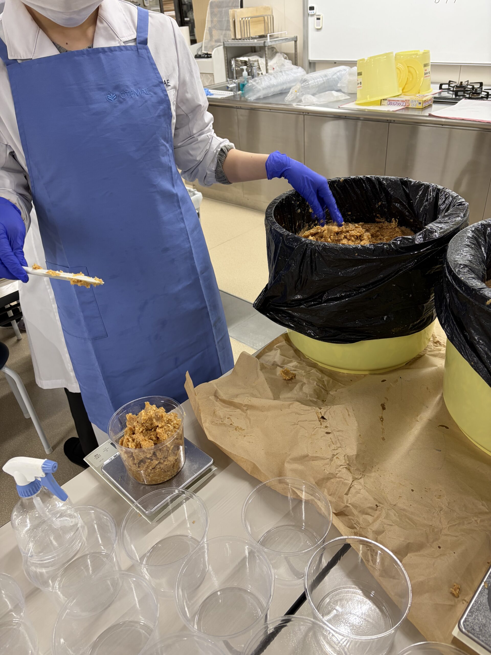 毎年11月に行われる大手前フェスタでも手作りみそ体験が行われており、授業と同じようにみそを作り熟成させ、春頃に参加された方へお渡ししていますが、いよいよ半年熟成させた米みそも完成を迎えました。
